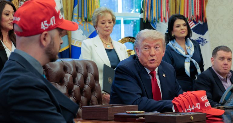 President Donald Trump made people laugh in the Oval Office on Wednesday when he asked a wounded veteran about his “Let’s Go Brandon” sticker. As the president met with wounded...